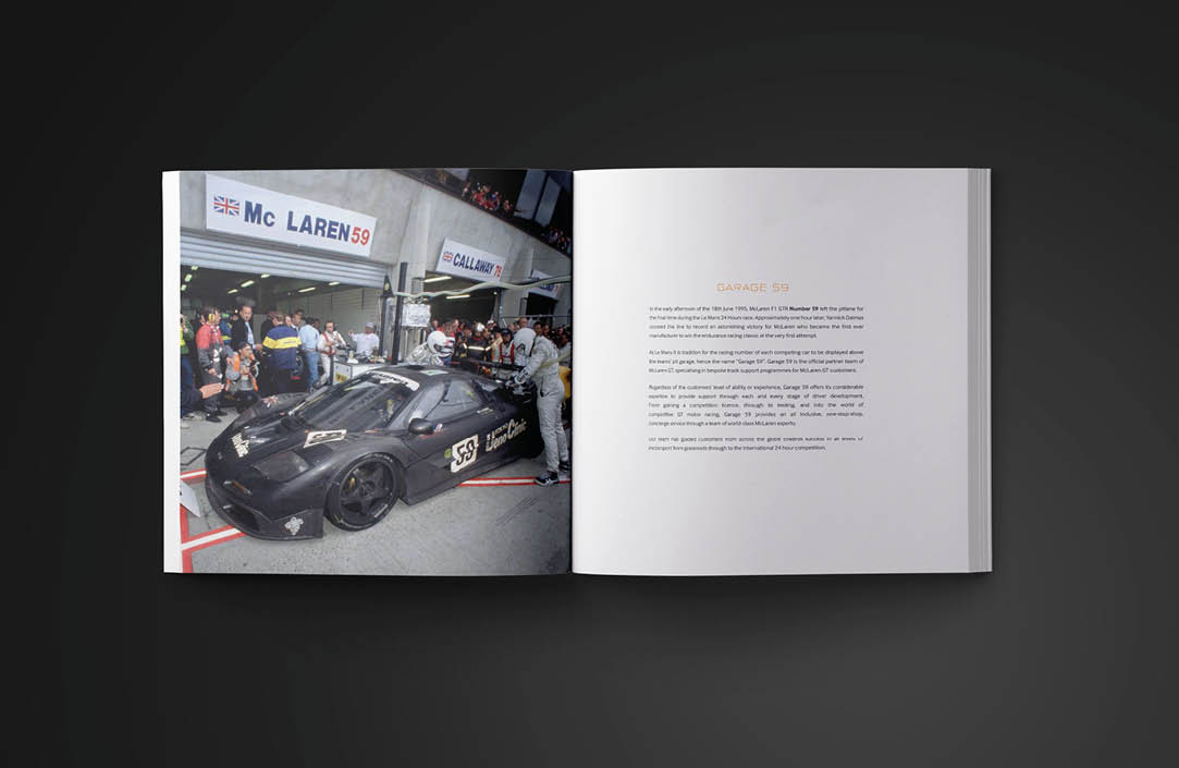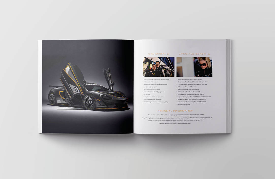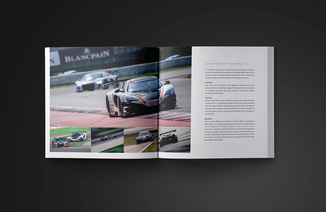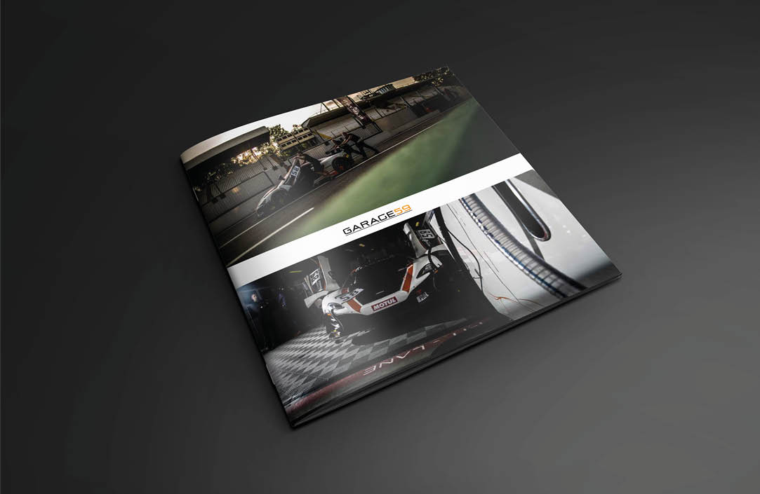 Over a period of time, I designed a series of high-quality brochures that captured both the precision of the team’s engineering expertise and the adrenaline-fuelled excitement of the race track. Each design sought to balance the technical credibility of Garage 59 with the drama and energy of motorsport.